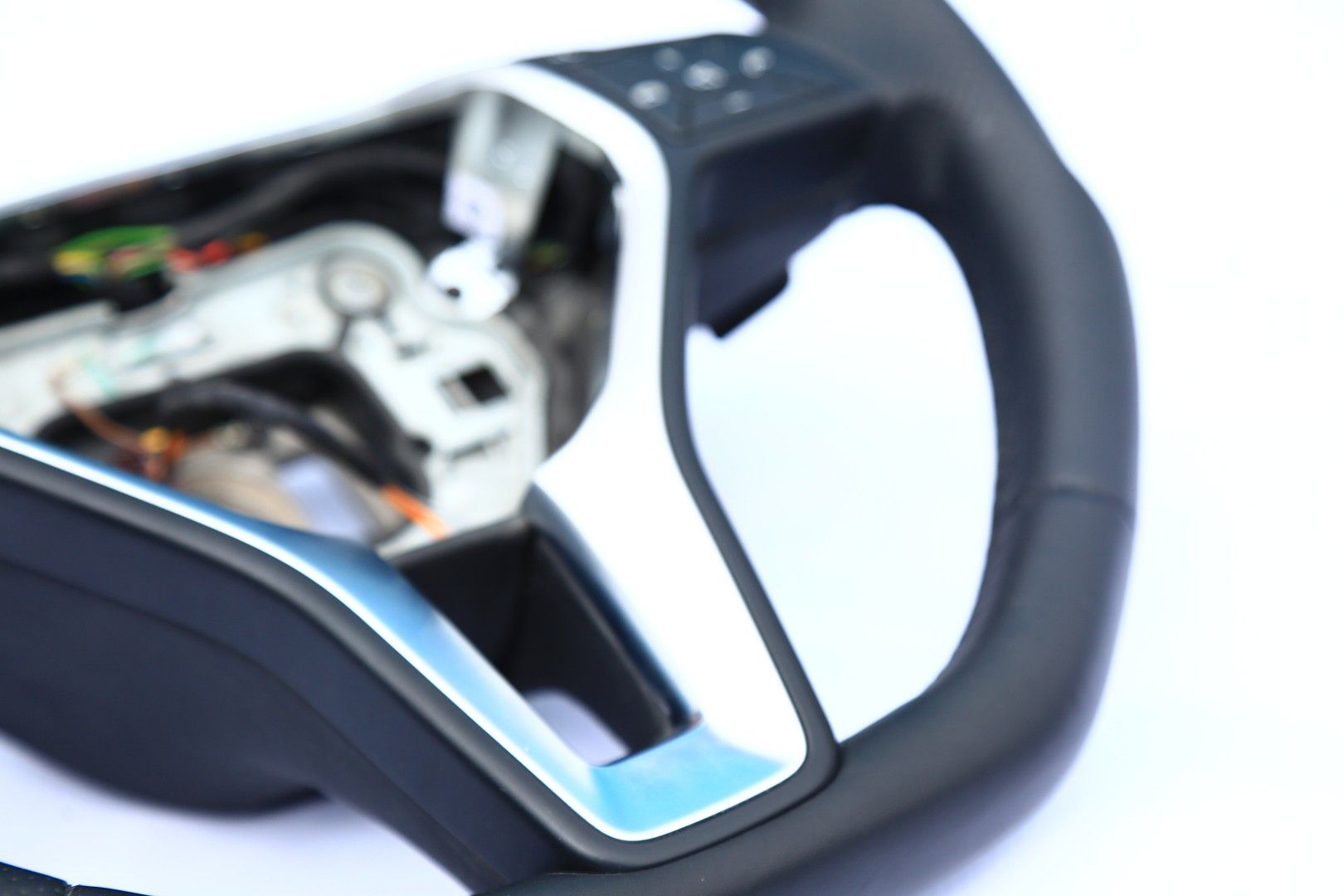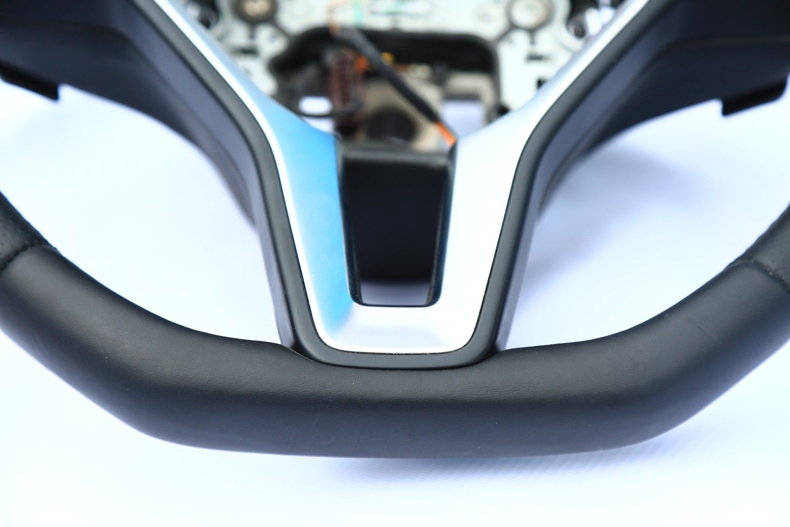 - Materials: smooth genuine leather on the top and on the bottom part of the steering wheel, perforated genuine leather on the sides.