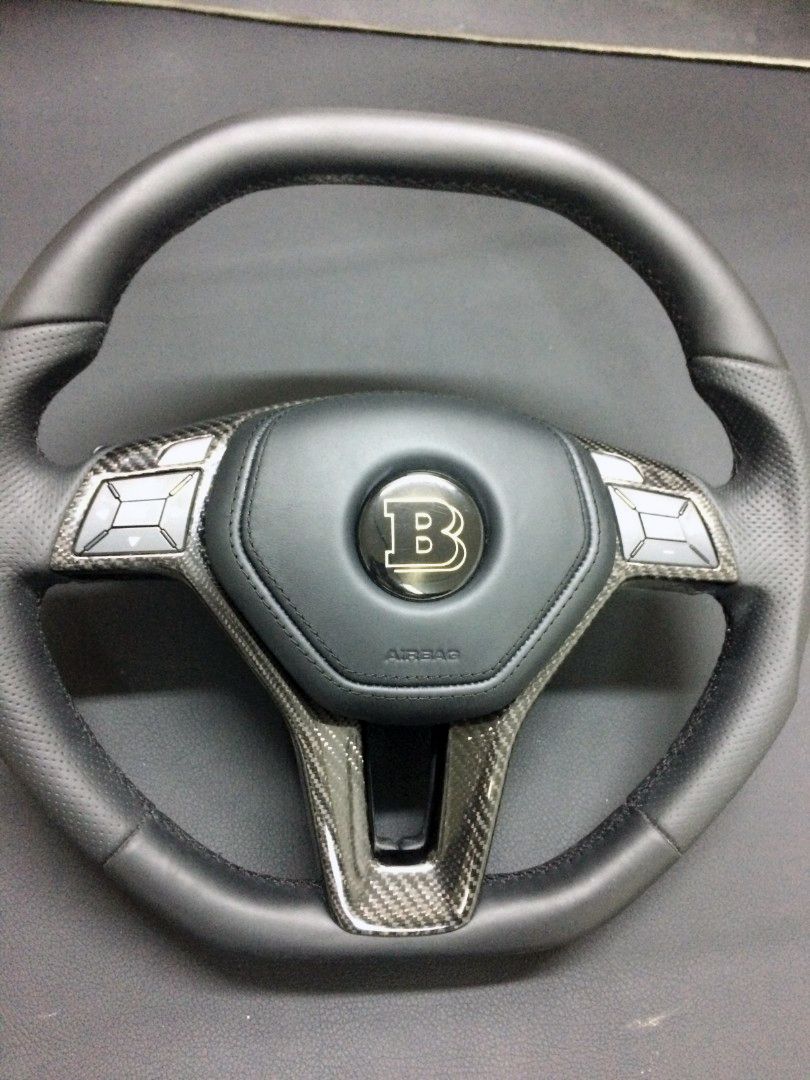 - Materials: high-grade carbon fiber center, smooth genuine leather on the top and bottom part of the steering wheel, perforated genuine leather on the sides.