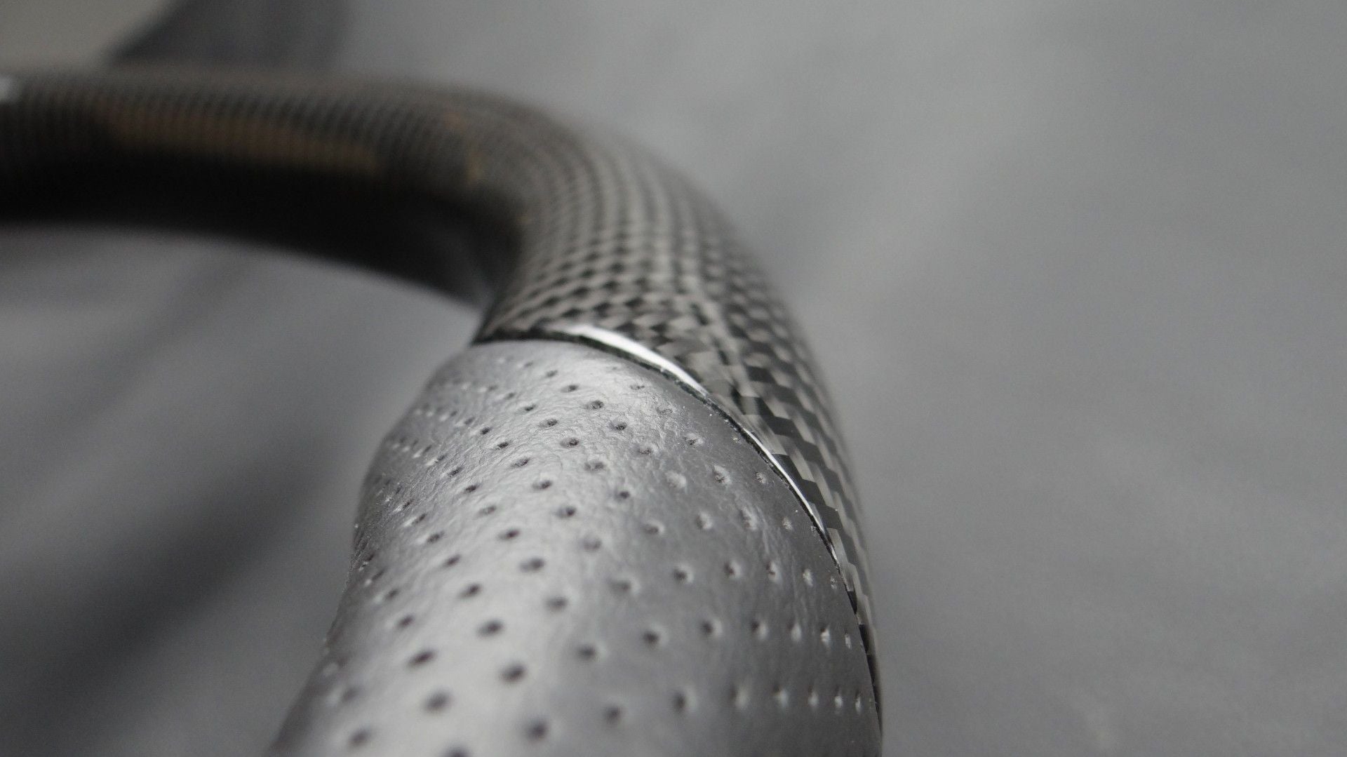 - Materials: high-grade carbon fiber top and bottom, black perforated leather on the sides.