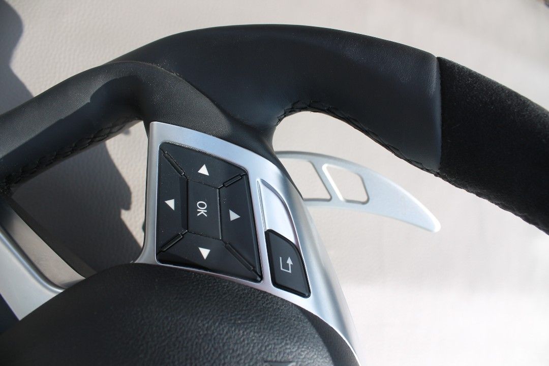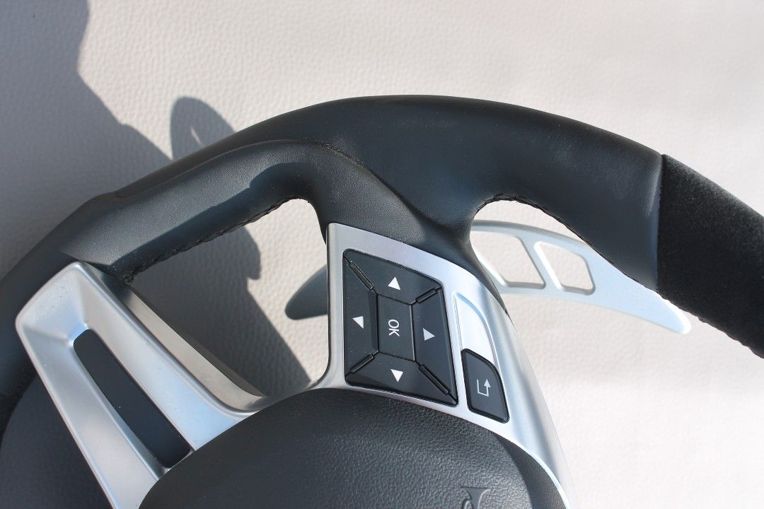 - Materials: black Alcantara top and bottom, black genuine leather on the sides.